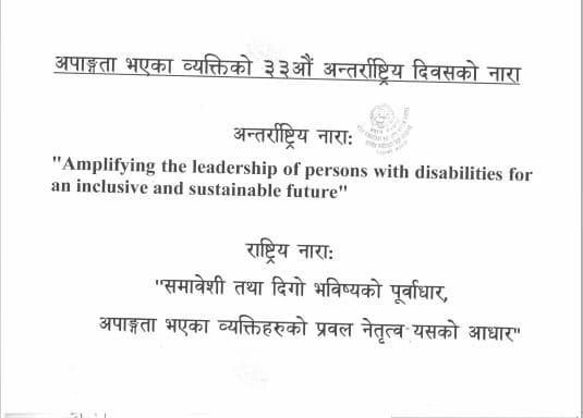 अपाङ्गता भएका व्यक्तिको ३३औं अन्तर्राष्ट्रिय दिवसको नारा